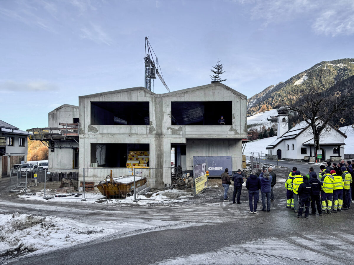 Mit der Firstfeier am 3. Dezember 2025 konnten die Rohbauarbeiten für das „Bildungszentrum Gallzein“ noch rechtzeitig vor Wintereinbruch abgeschlossen werden.
