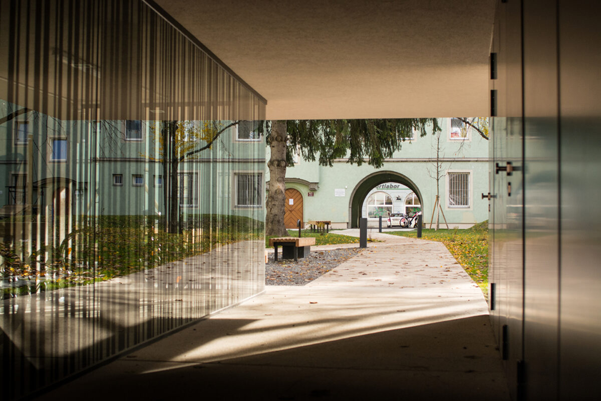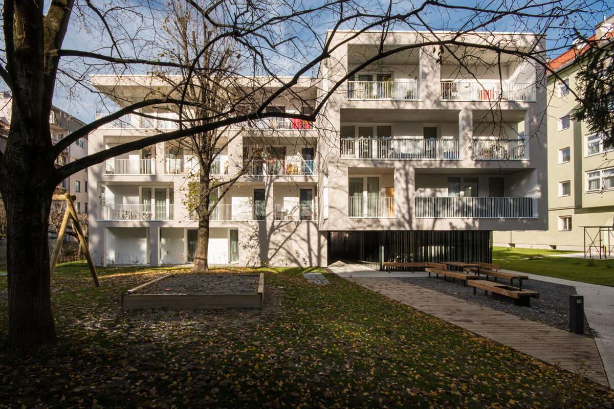 Wie ein fehlendes Puzzleteil fügt sich der neue Wohnbau in den Innenhof ein, indem er die Lücke zwischen den alten Bäumen schließt. Gleichzeitig wird eine neue Mitte definiert, welche die Gemeinschaft zur Begegnung und Kommunikation einlädt. Ein urbaner mit Leben befüllter Grünraum bereichert den Charakter des Hofes.