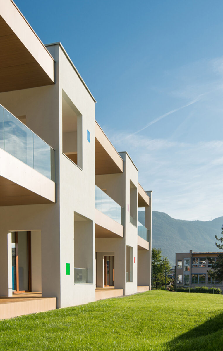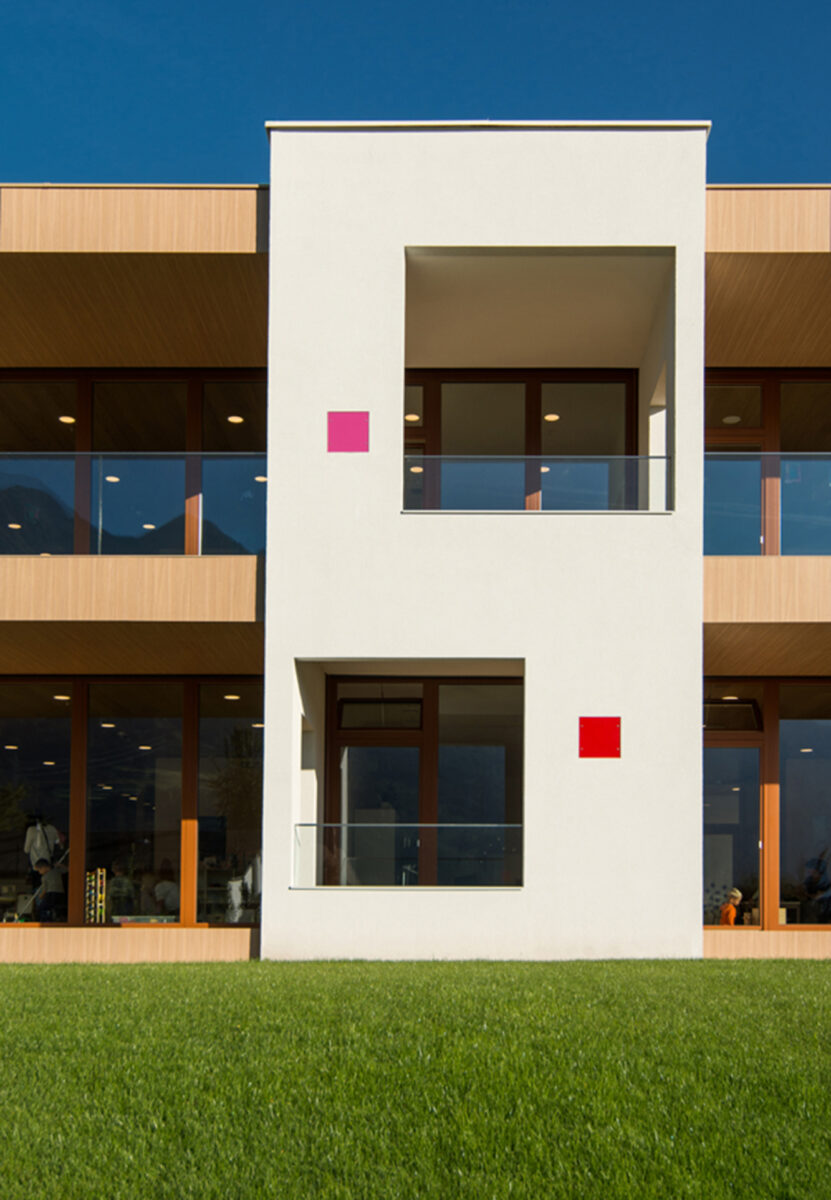 Der Kindergarten ist in seiner Konzeption kompakt geplant was einer funktionellen und kostengünstigen Bauweise entspricht. Dem Wunsch, die Bewegungsräume von den Gruppenräumen räumlich abkoppeln zu können, wurde nachgekommen. Dies hat den Vorteil, dass diese Räume auch für externe Veranstaltungen benützt werden können.