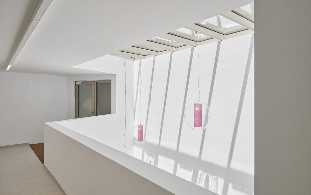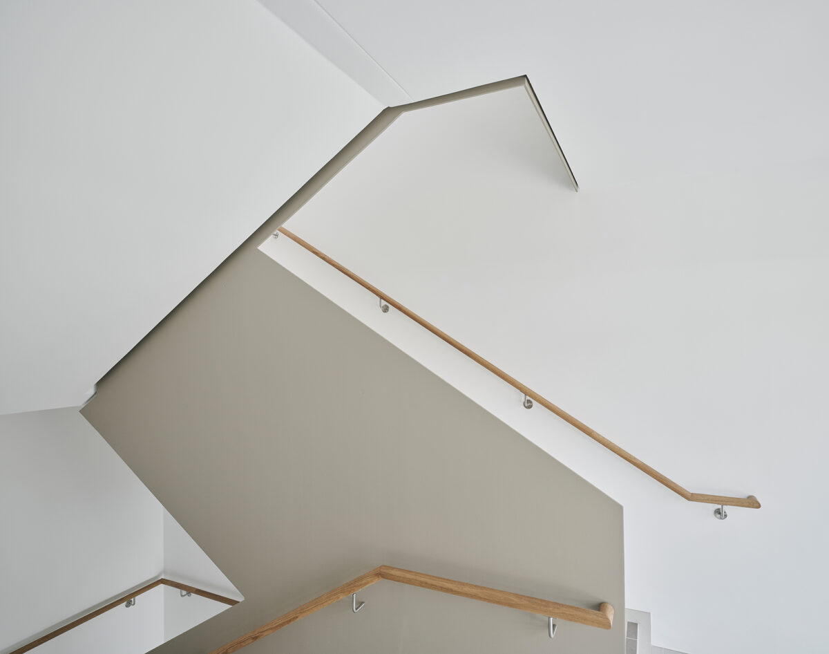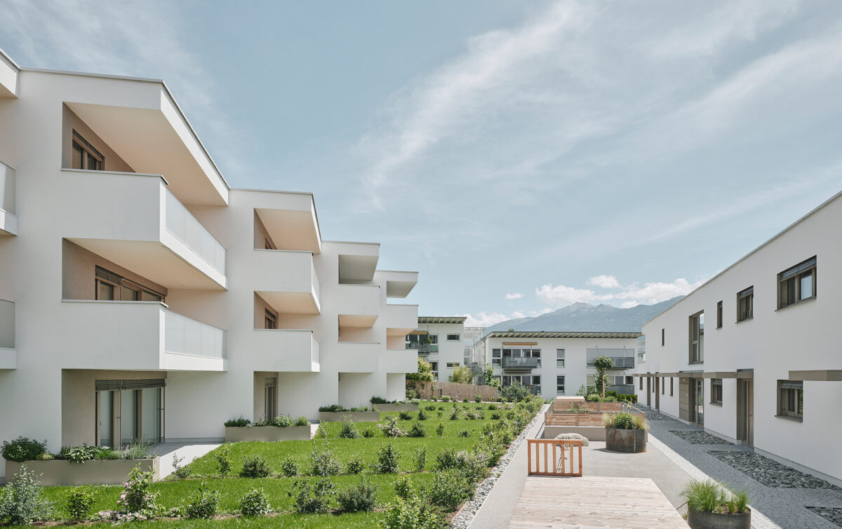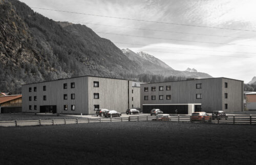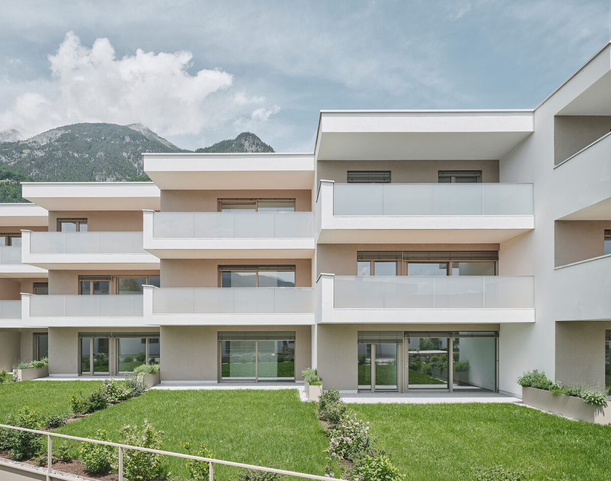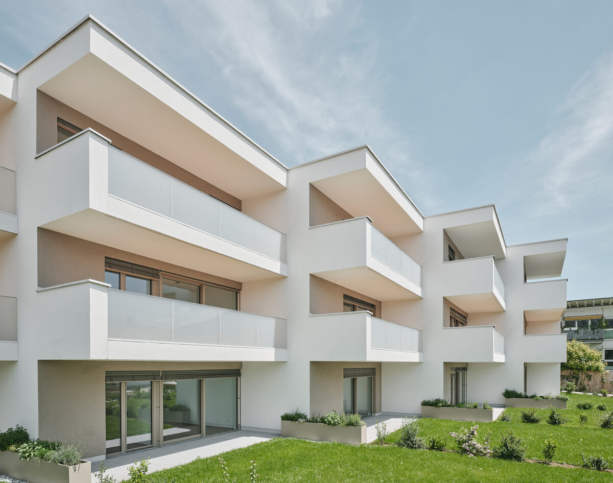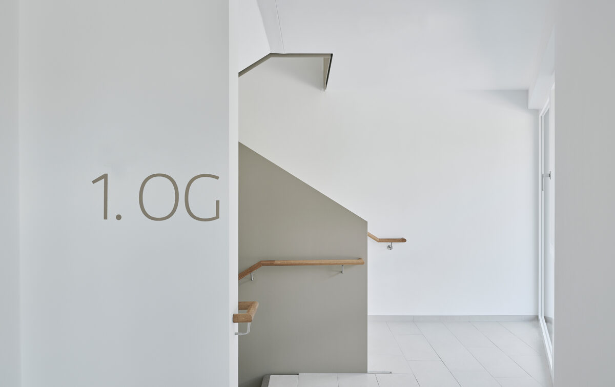 Zwei Baukörper mit Hauptorientierung nach Süden werden um ein Geschoss versetzt in die bestehende Hanglage gesetzt. Durch die Baukörperstaffelung Richtung Westen öffnet sich der Außenraum. Somit werden eine optimale Besonnung und Aussicht der einzelnen Wohnungen und Balkone ermöglicht. Der nordseitige Baukörper nimmt die Straßenflucht auf und schließt die vorgefundene städtebauliche Bebauung zum Bahndamm hin. Gleichzeitig dient er als Schallbarriere für die südseitige Bebauung und die großzügige Außenanlage. Diese ist im Zentrum als Spielplatz und Treffpunkt für die zukünftigen Bewohner geplant. Die beiden Baukörper gliedern sich in ihrer Höhenentwicklung selbstverständlich in das angrenzende Ensemble ein.